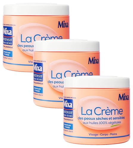 Mixa Intensif Peaux Sèches - La Crème des Peaux Sèches et Sensibles - Multi Usage Visage, Corps, Mains, Pieds - Nourrit 24h et Apaise - Pénétration Rapide - Hypoallergénique - Pot 400 ml (Lot de 3)