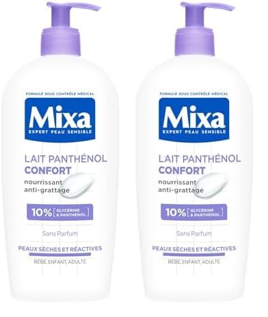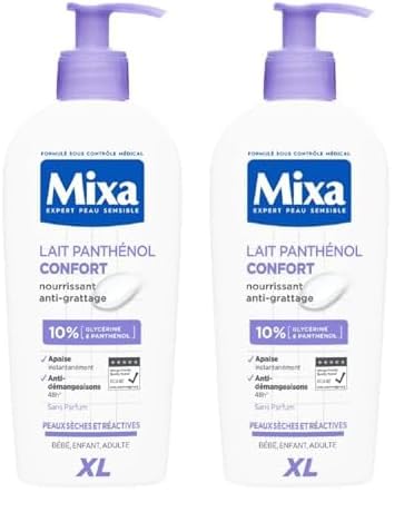 Mixa Expert Peau Sensible - Lait Panthénol Confort - Anti-Démangeaisons - Peaux Sèches et Réactives - Bébé, Enfant, Adulte Hypoallergénique - Sans Parfum - 250ml (Lot de 2)