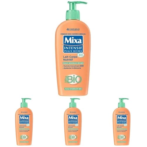 Mixa Intensif Peaux Sèches Lait Corps nutritif certifié Bio, 250 ml (Lot de 4)