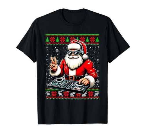 Pull de Noël moche Père Noël DJ Mixer Musique T-Shirt