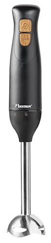 Bestron Mixeur plongeant, Mixer plongeur avec 2 niveaux de vitesse et une poignée ergonomique, incluant une fonction turbo à plus de 14.000 tr/min, tige amovible, couleur: noir/bois