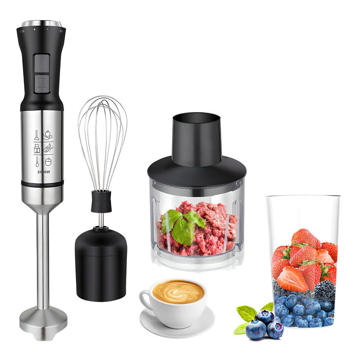 mixeur à main 4 en 1 Multifonctionnel 2000W Hachoir à viande Presse-fruits Fouet