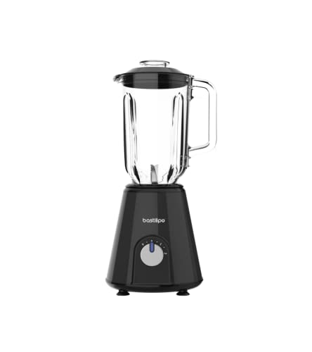 Petra Mixeur Blender 600W avec Bol en Verre 1.5L, Blender Smoothie avec Lames Inox & 2 Vitesses, Mixeur pour Soupes & Smoothies avec Fonction Pulse, Couvercle Sécurisé Sans BPA, Noir