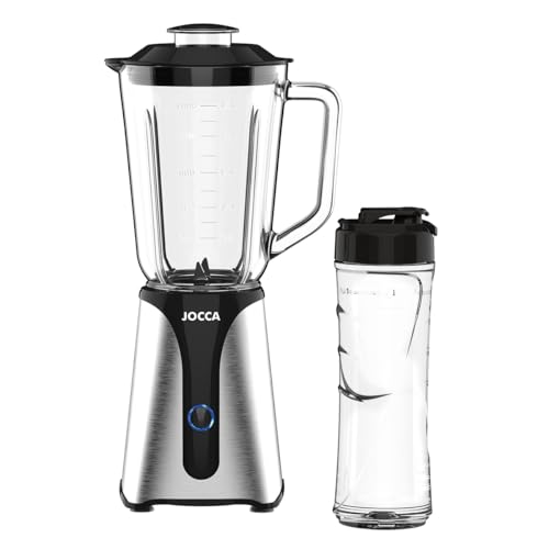 JOCCA Mixeur en verre avec bouteille de voyage/puissance 350 W/carafe 1 l et bouteille de 600 ml/lumière LED, couvercle amovible, lames en acier inoxydable (barre + bouteille de 350 W)