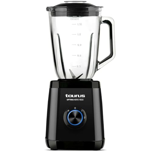 Taurus Magnum 1300 - Mixeur blender 1300W, pichet en verre de 1,5L, 4 lames amovibles en acier inoxydable, broyeur à glace, sans bpa, lavable au lave-vaisselle, 2 vitesses + Turbo
