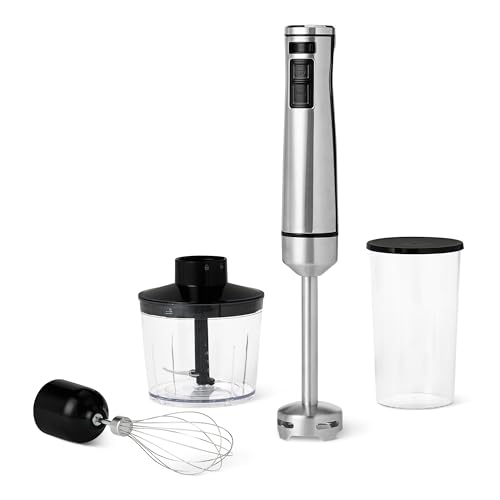 JATA JEBT1795 Mixeur plongeant professionnel 800 W | lames et pied en acier inoxydable | Vitesse réglable et fonction turbo | Comprend hachoir et verre doseur 600 ml | Nettoyage facile
