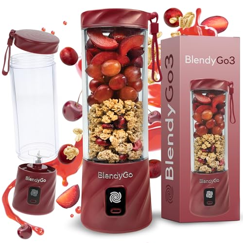 Blender portable BlendyGo3, Mixeur portable, Blender Smoothie rechargeable USB, Mixeur Smoothie puissant sans fil, Mini Blender pour smoothies et jus, sans BPA (Bourgogne)