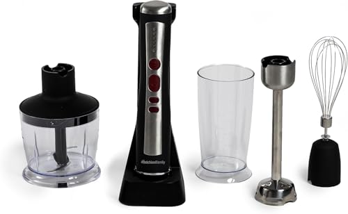 Melchioni Family | Mixeur Plongeant Sans Fil Rechargeable, Ensemble avec Batteur, Hachoir, Mixeur et Verre Gradué de 600 ml, Modèle ZOE, Couleur Noire
