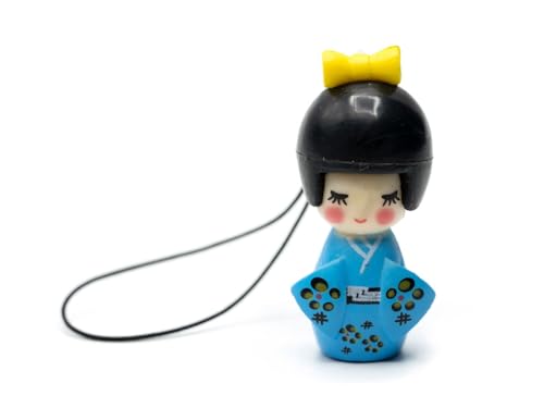 Miniblings poupée Geisha Asie porte-clés mobiles poupée asiatique bois bleu clochette KOKESHI- Pendentif bijoux faits à la main I Porte-clé Porte-clés