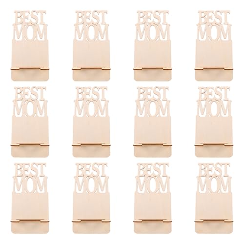 LOPUNER Lot de 12 Supports Mobiles en Bois DIY, Support pour Téléphone de Bureau en Bois Naturel, Ornement Décoratif Fonctionnel, Présent Fête des Mères, Facile à Monter, Usage