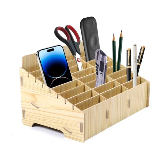 Pilipane Boîte de rangement pour téléphone portable à 24 compartiments, Boîte de stockage de gestion des téléphones mobiles en bois, adapté aux salles de classe, aux salles de conférence, etc