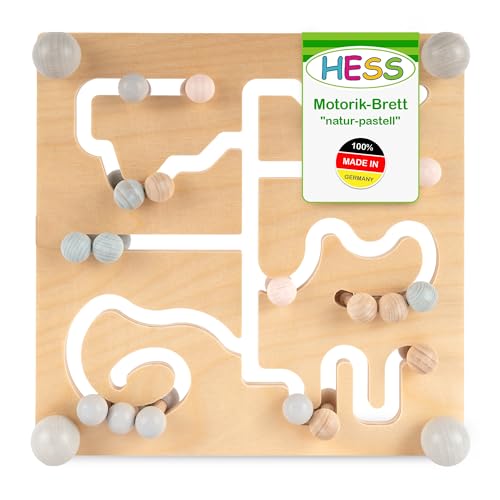 Hess 14811 Planche de motricité en Bois avec 20 Boules Mobiles pour bébé à partir de 12 Mois Fait à la Main Naturel Env. 27 x 6,5 x 27 cm