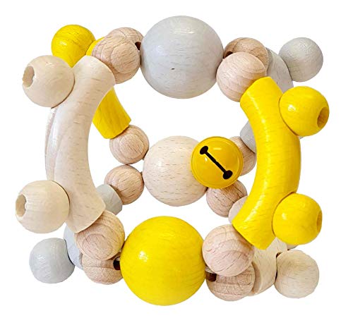 Hess Holzspielzeug 11096 Hochet de motricité en bois en forme de boule avec pièces mobiles pour bébés à partir de 6 mois Fait à la main Jaune naturel Pour la préhension et le hochet joyeux