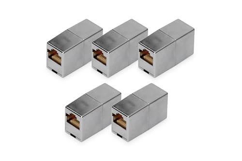 DIGITUS DN-93901 - Coupleur RJ45 Cat 5e - 5 pièces - Câble LAN Rallonge - Connecteur de câble réseau Cat5e - Compatible PoE - Coupleur modulaire - Pour Switch, DSL, modem, routeur, PC - Argent