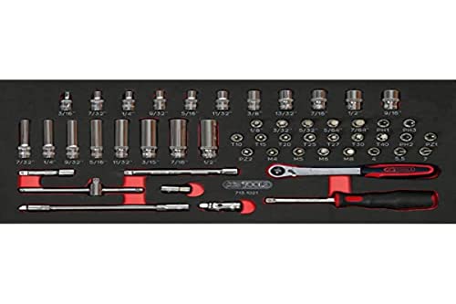 KS Tools 712.5038 - Module d'embouts longs pour la mécanique 1/4'' - 1/2'' - Pour servantes et établis - Empreinte des outils découpée au laser - Mousse imputrescible - 38 pièces