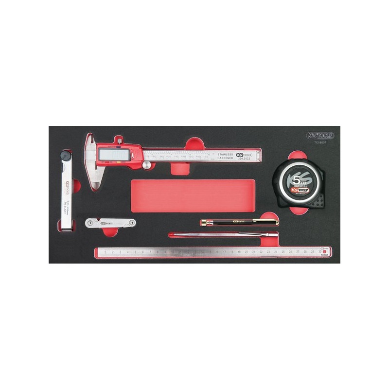 KS Tools 713.8007 - Module d'outils de mesure - Pour servantes et établis - Empreinte des outils découpée au laser - Mousse imputrescible - 7 pièces