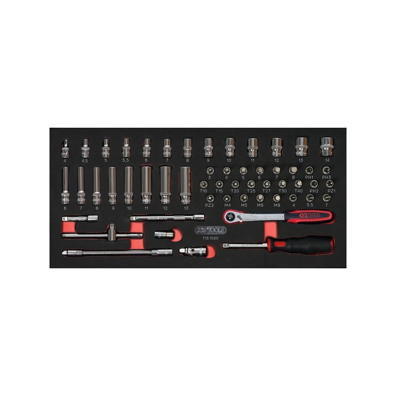 KS Tools 713.1021 - Module de douilles et accessoires 1/4'' - Gamme ULTIMATE® - Empreinte des outils découpée au laser - Mousse imputrescible 51 pièces