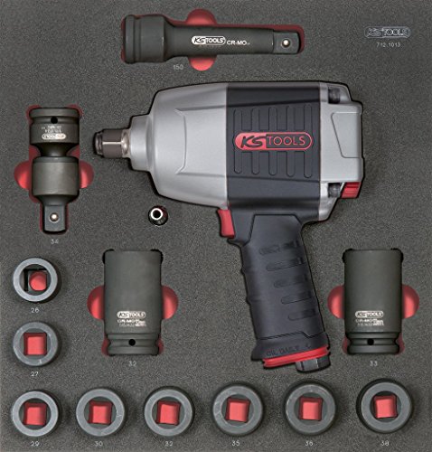 KS Tools 712.1013 - Module de douilles et clé à chocs pneumatique 3/4" - Empreinte des outils découpée au laser - Résistant aux huiles et produits chimiques - Mousse imputrescible - 13 pièces