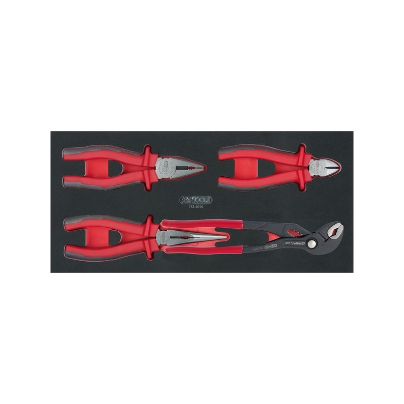 KS TOOLS - 713.4014 - Module de 4 pinces - Coupante, Universelle, Bec demi-rond, Multiprise - Mousse imputrescible - Empreintes au laser - Pour servantes et établis - Qualité professionnelle