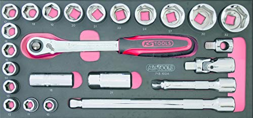 KS Tools 713.1025 - Module de douilles et accessoires 1/2'' - Gamme ULTIMATE® - Empreinte des outils découpée au laser - Mousse imputrescible 24 pièces