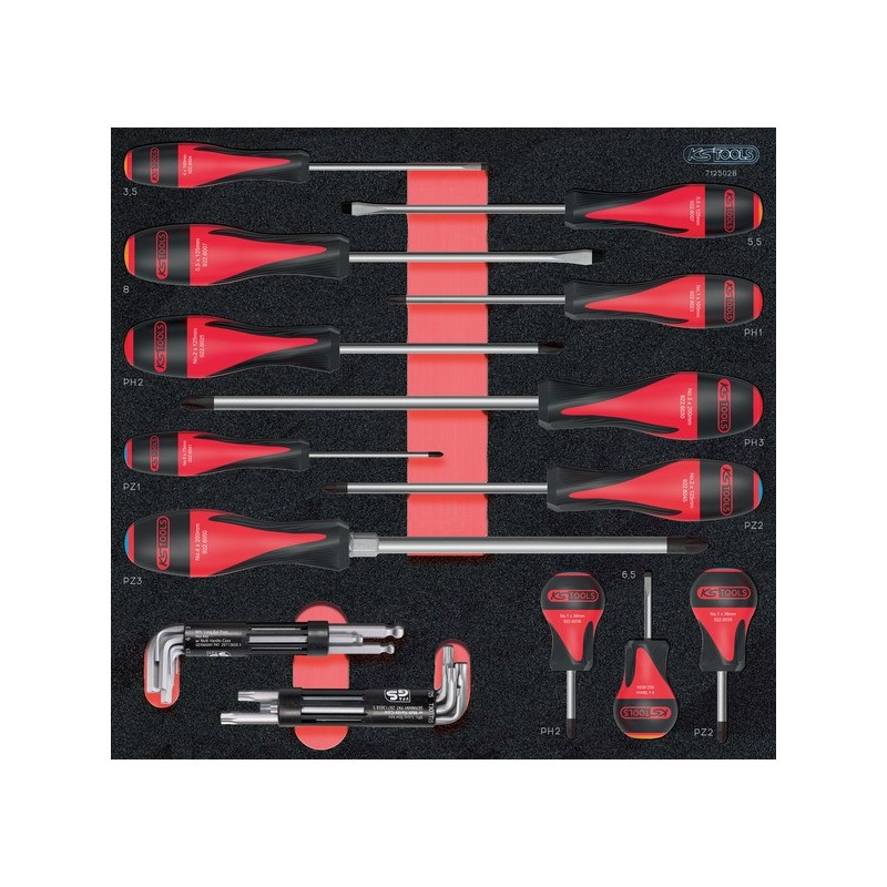 KS Tools 712.5028 - Module de Vissage, 28 Pièces - Module pour Établi ou Servante d’Atelier - Empreinte d’Outils Découpée au Laser - Composition d’Outils de Vissage pour Servante