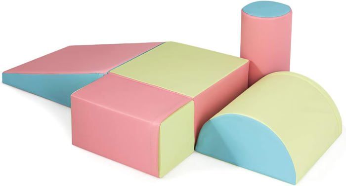 Jeu de Construction - GOPLUS - 5 Pcs Module Motricité Bébé en Mousse avec Housse en PU pour Enfants dÂge Préscolaire Rose