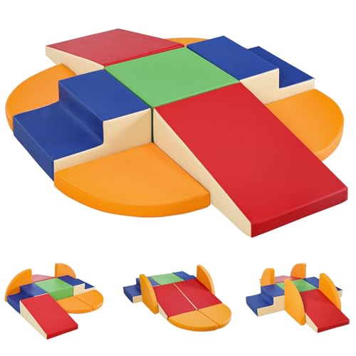 AIYAPLAY 7 PCS Parcours motricité bébé en mousse, module motricité bébé avec housse lavable, jouets éducatifs pour ramper grimper pour enfants d'âge préscolaire, multicolore
