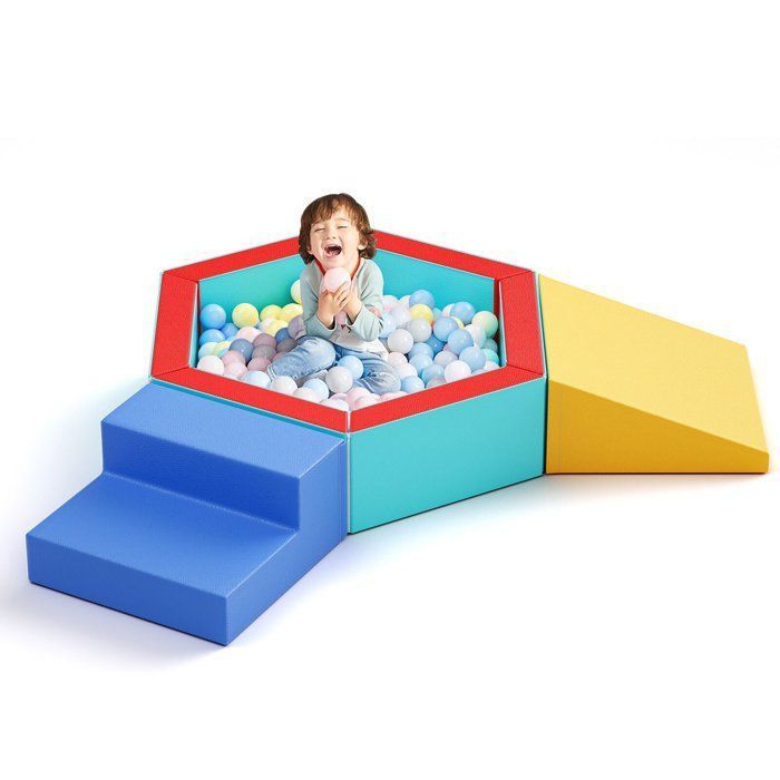 GOPLUS 5 PCS Parcours Motricité Bébé avec Piscine a Balle, Module Motricité Bébé avec Housse Amovible & Lavable, Bloc de Construction pour Ramper, Grimper, Idéal pour Enfant Âge Préscolaire