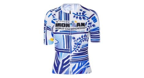 Maillot manches courtes ironman x santini championnat du monde nice 2024 bleu blanc femme