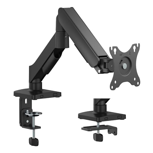 DELTACO GAMING Support pour Ecran PC/Moniteur/Gaming 17-32 Pouces, VESA 75mm et 100mm, Ergonomique Ressort à Gaz Bras Long Pince de Bureau à Mouvement Complet Inclinaison et Pivotant