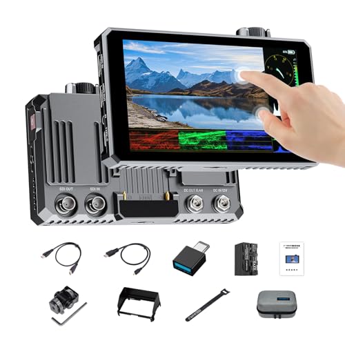 Fotga E50 12,7 cm Ultra Lumineux 2500 nit on-Camera Moniteur de Champ Tactile 3D LUT, Wavaforme, Vector, 2 emplacements de Batterie, lumière du Jour Visible 2200, IPS, 4K HDMI entrée/Sortie, 3G SDI