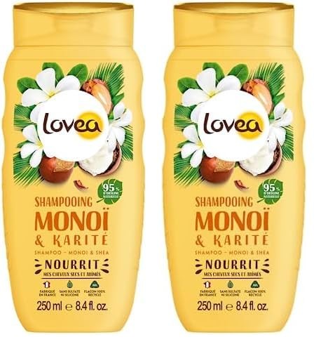 LOVEA - Après-Shampooing - Monoï & Karité - Nourrit, Répare & Démêle - Cheveux Secs Et Abimés - 96% D'Origine Naturelle - Sans Silicone - Vegan - Fabriqué En France - 200 ml (Lot de 2)