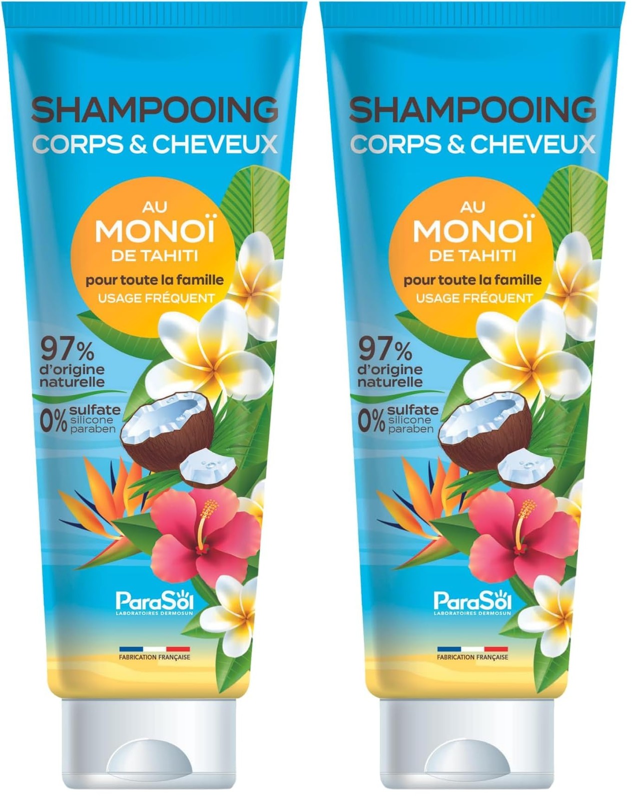 ParaSol - Shampooing corps et cheveux au Monoï de Tahiti - 97% d'origine naturelle - 0% Sulfate, Silicone, Paraben - Fabriqué en France (Lot de 2)