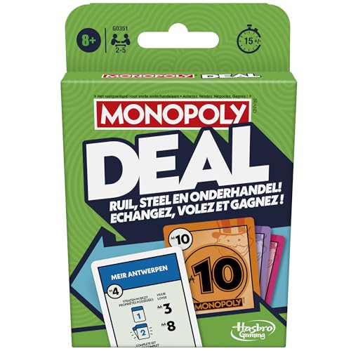 Monopoly Deal | Jeu de Cartes Rapide pour 2 à 5 Joueurs | Jeux de société Amusants pour la Famille et Les Enfants | à partir de 8 Ans | 2 à 5 Joueurs | 15 Min. | Jeux de Voyage - Version française