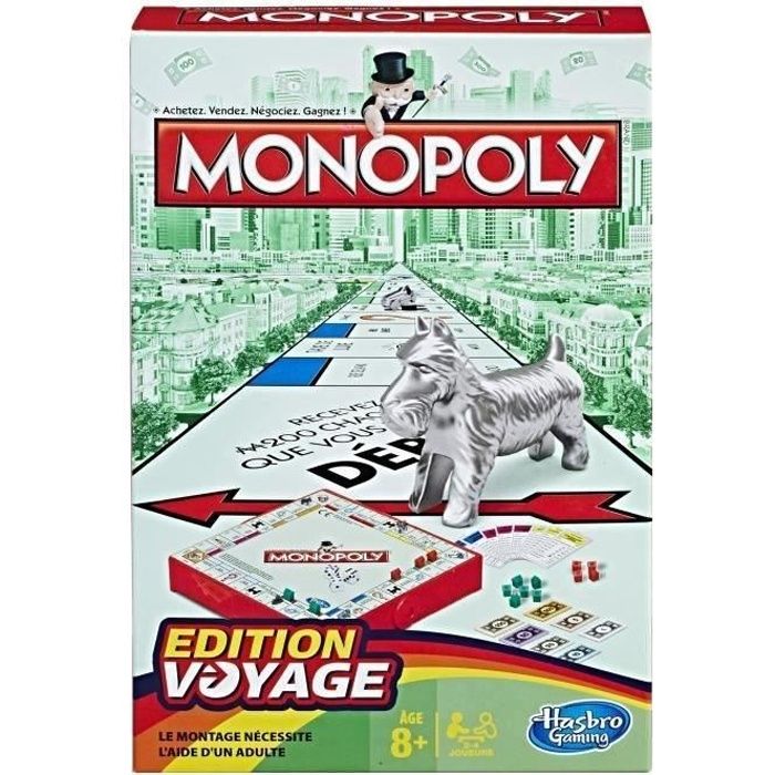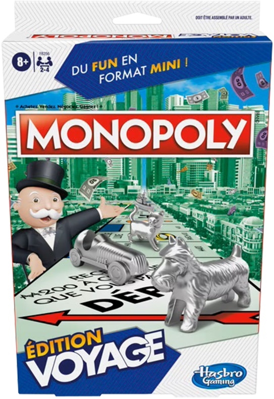 Hasbro Gaming Monopoly édition Jeu de Voyage, Jeu de Plateau Portable pour 2 à 4 Joueurs, pour Les Fans de Jeux de société Familial dès 8 Ans, pour Les Voyages, Version française