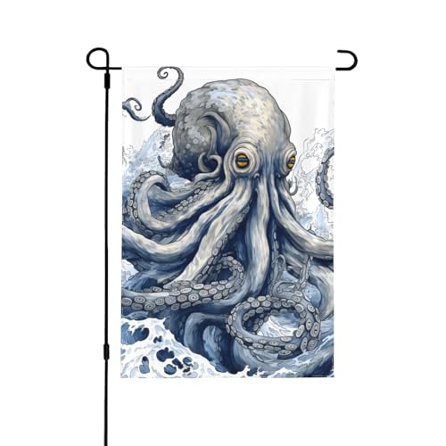 Drapeau de jardin saisonnier double face 30,5 x 45,7 cm Drapeau de jardin fantastique Aventure du monde marin Kraken Octopus Monster Welcome Yard House Extérieur Jardin Drapeaux
