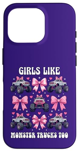 Girls Like Monster Trucks Too Coquette avec nœuds Roses et cœurs Coque pour iPhone 16 Pro Max