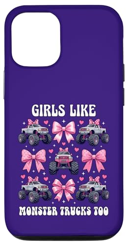 Girls Like Monster Trucks Too Coquette avec nœuds Roses et cœurs Coque pour iPhone 12/12 Pro