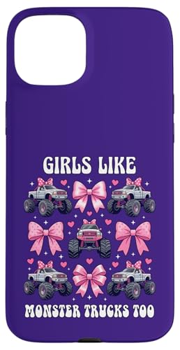Girls Like Monster Trucks Too Coquette avec nœuds Roses et cœurs Coque pour iPhone 15 Plus