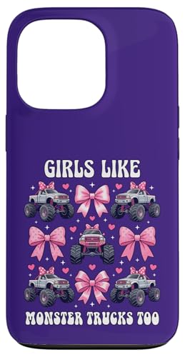 Girls Like Monster Trucks Too Coquette avec nœuds Roses et cœurs Coque pour iPhone 13 Pro