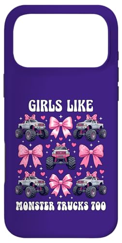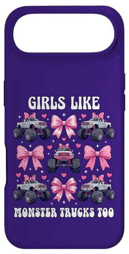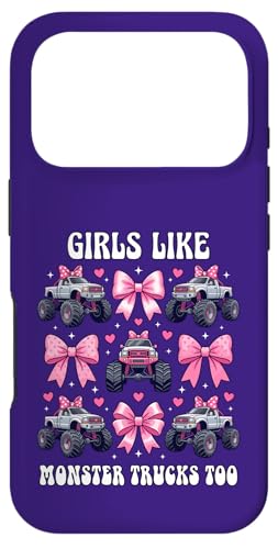 Girls Like Monster Trucks Too Coquette avec nœuds Roses et cœurs Coque pour iPhone 17 Pro Max