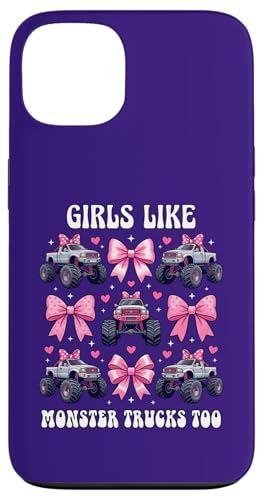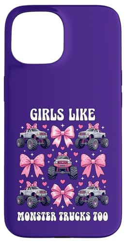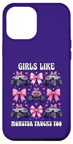 Girls Like Monster Trucks Too Coquette avec nœuds Roses et cœurs Coque pour iPhone 13 Pro Max