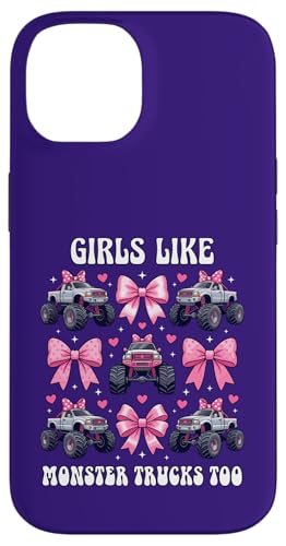 Girls Like Monster Trucks Too Coquette avec nœuds Roses et cœurs Coque pour iPhone 14 Plus