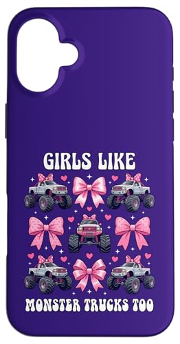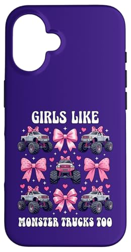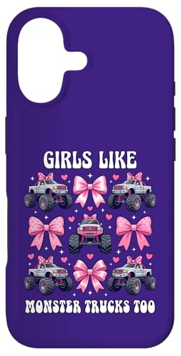 Girls Like Monster Trucks Too Coquette avec nœuds Roses et cœurs Coque pour iPhone 16 Plus