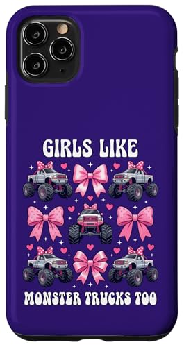 Girls Like Monster Trucks Too Coquette avec nœuds Roses et cœurs Coque pour iPhone 11 Pro Max