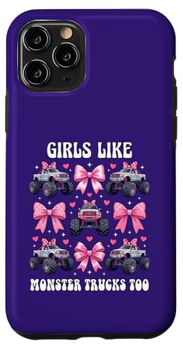 Girls Like Monster Trucks Too Coquette avec nœuds Roses et cœurs Coque pour iPhone 11 Pro