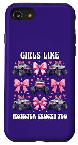 Girls Like Monster Trucks Too Coquette avec nœuds Roses et cœurs Coque pour iPhone SE (2020) / 7/8