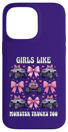 Girls Like Monster Trucks Too Coquette avec nœuds Roses et cœurs Coque pour iPhone 14 Pro Max