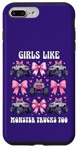 Girls Like Monster Trucks Too Coquette avec nœuds Roses et cœurs Coque pour iPhone 7 Plus/8 Plus