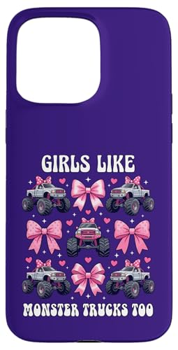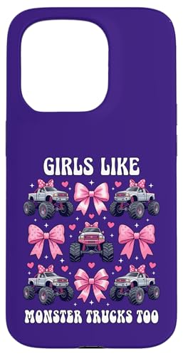 Girls Like Monster Trucks Too Coquette avec nœuds Roses et cœurs Coque pour iPhone 15 Pro Max